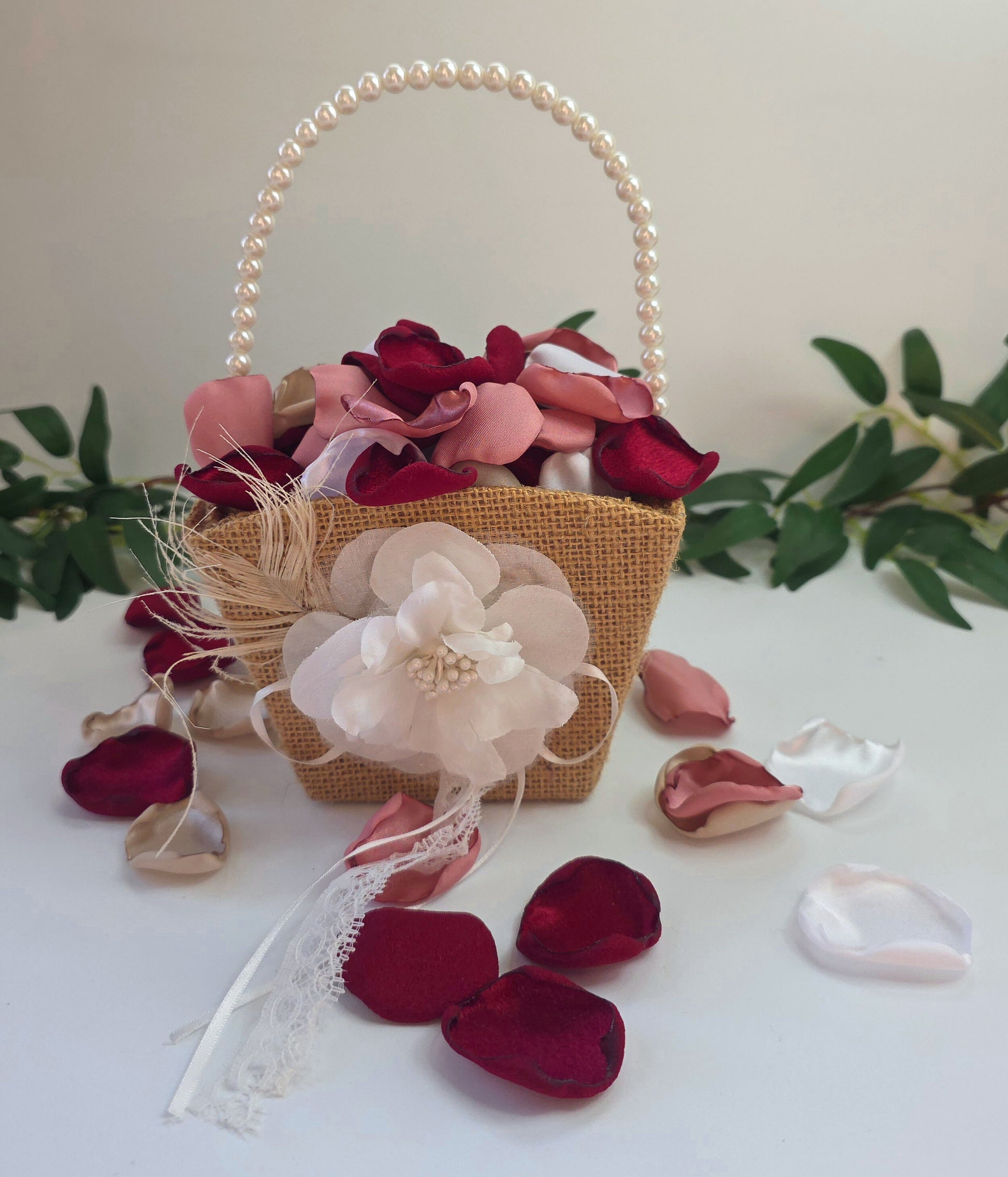 We love bringing a little extra pizzazz to our photos, so you’ll often see us styling with flower girl baskets, candles, and other wedding‑day décor. These props help us create beautiful, inspiring images—but they’re part of our personal collection and are used for photography only. They won’t be included with the rose petal sets you purchase, but they do help us show just how stunning your petals can look in action.